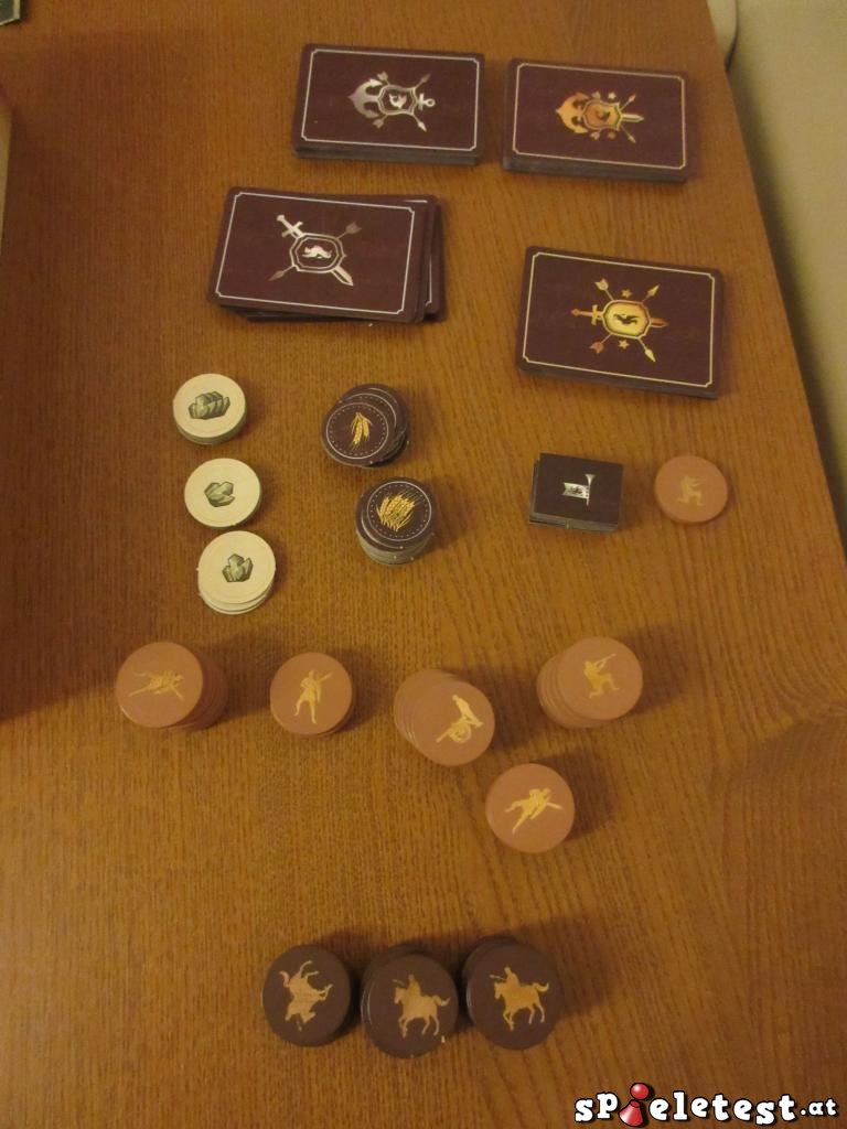 Das Spielmaterial ist haptisch sehr ansprechend, krankt jedoch leider an der Verarbeitung und Symbolik. Bei den Infanterie und Kavallerie ist eine Unterscheidung zwischen Standard- und verbesserten Einheiten nur sehr schwer möglich.